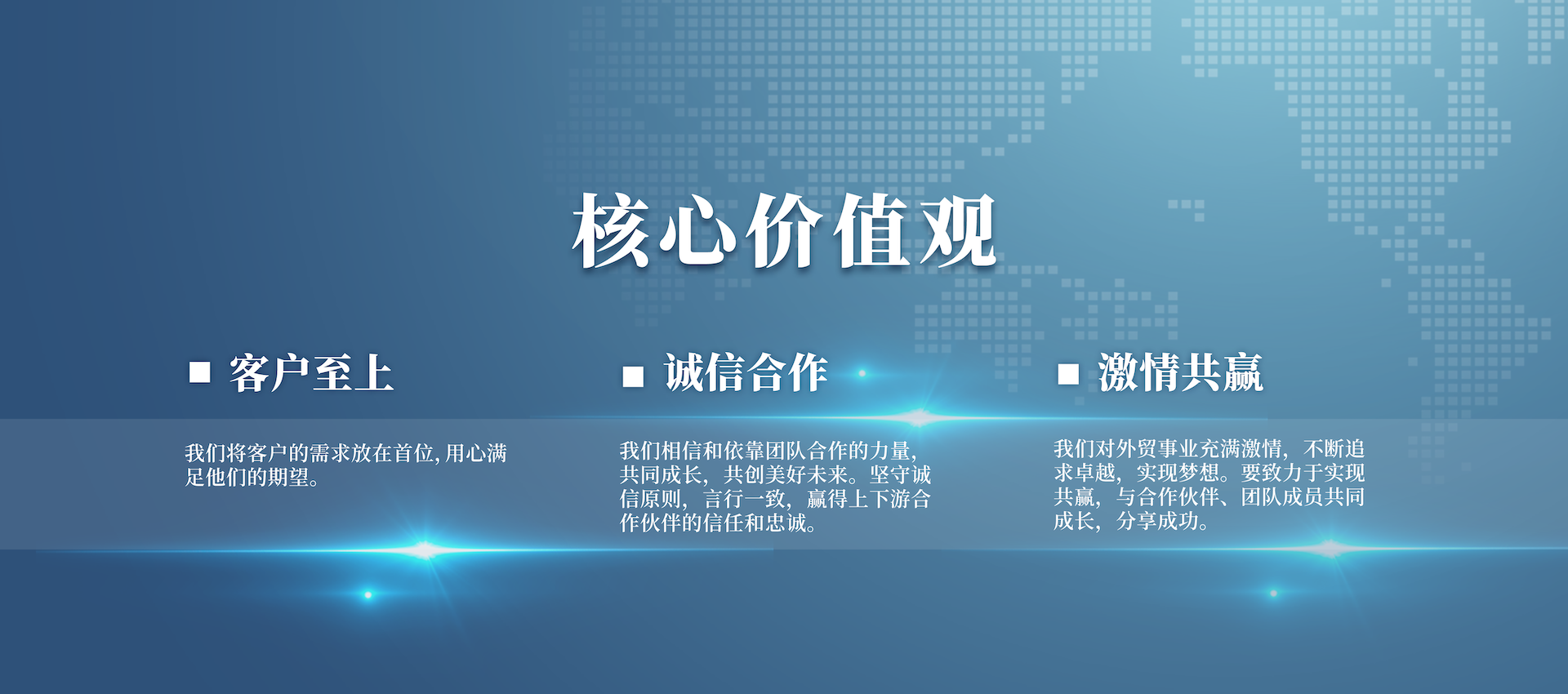 公司從成立伊始就緊緊圍繞外貿(mào)主業(yè),充分發(fā)揮擁有國(guó)際營(yíng)銷渠道及掌握國(guó)際市場(chǎng)信息的優(yōu)勢(shì),著力優(yōu)化業(yè)務(wù)結(jié)構(gòu),轉(zhuǎn)變?cè)鲩L(zhǎng)方式,提高經(jīng)營(yíng)質(zhì)量,強(qiáng)化以客戶需求為原動(dòng)力的供應(yīng)鏈管理,建設(shè)出口商品生產(chǎn)基地。公司力爭(zhēng)發(fā)展成為以外貿(mào)為龍頭、實(shí)業(yè)為基礎(chǔ)、科技為依托,貿(mào)工技一體化發(fā)展的一流國(guó)際經(jīng)貿(mào)企業(yè)。